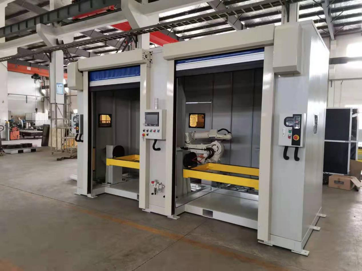 Dual-station dual robots are used to achieve full automation of welding. The robot has high utilization efficiency, low labor intensity of workers, high welding efficiency and high quality, and low product defect rate.